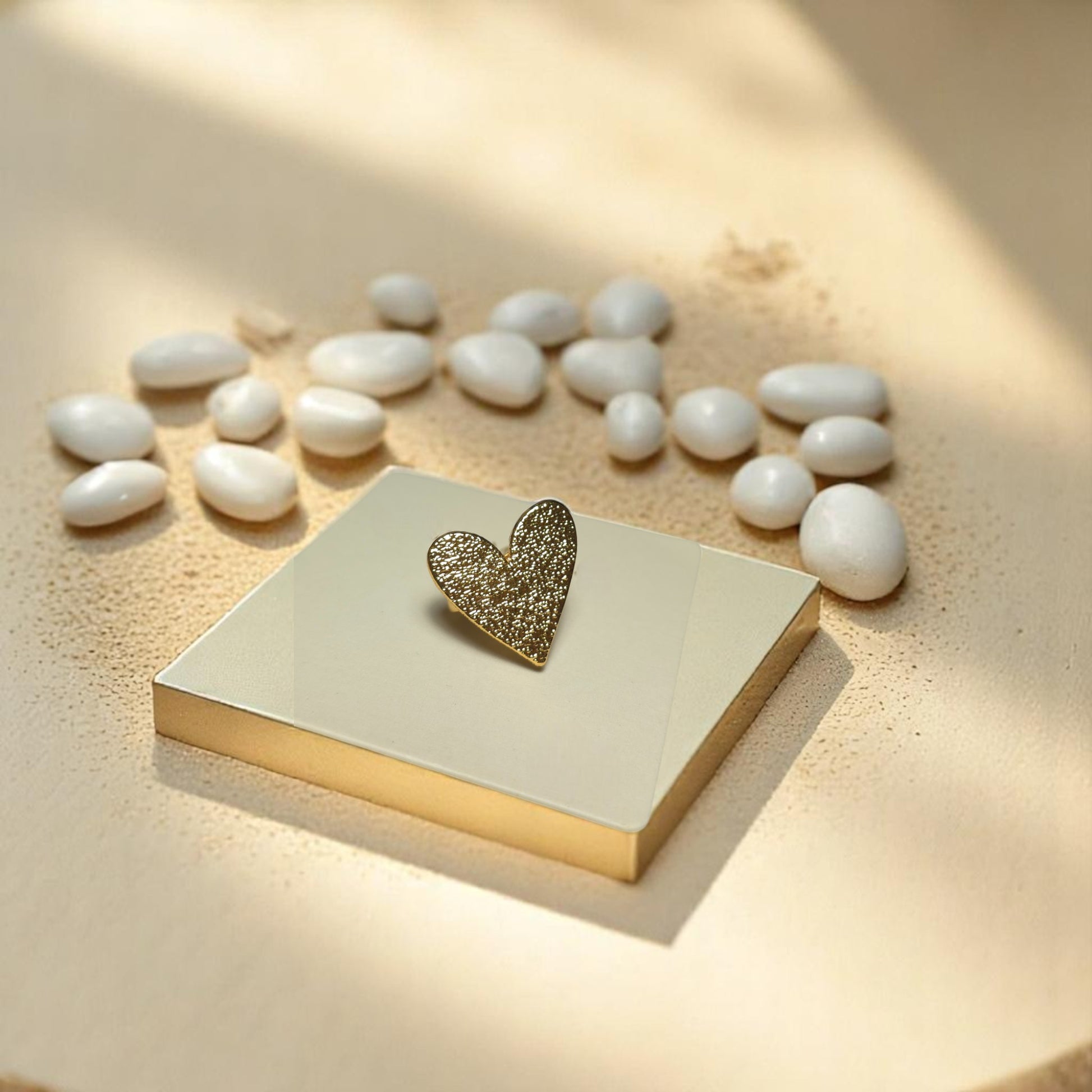 El anillo Nova en forma de corazón es una joya que habla desde el alma. Con su silueta elegante y textura luminosa en tono dorado, este anillo captura la esencia del amor moderno con un diseño que brilla con luz propia. Perfecto para llevar solo o en combinación con otras piezas delicadas.